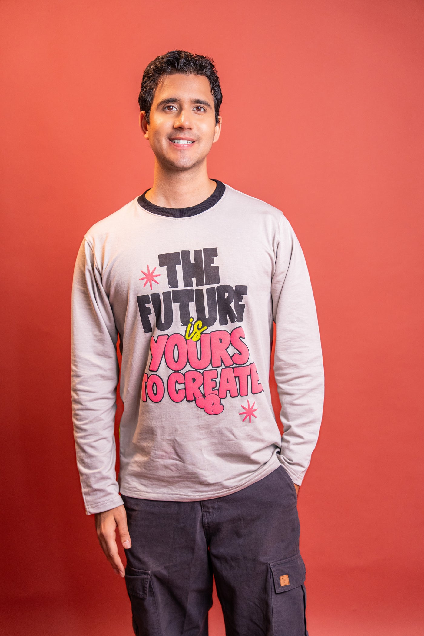 Stop letting your layering pieces feel flimsy. The Echo Flux T-Shirt delivers the crucial benefit of structured style and confident, forward-thinking motivation through its durable 220 GSM premium cotton and empowering graphic message, "The Future is Yours to Create." You get the superior coverage and fit of a high-quality full-sleeve design, ensuring a substantial, premium feel that elevates any casual or smart-casual ensemble.