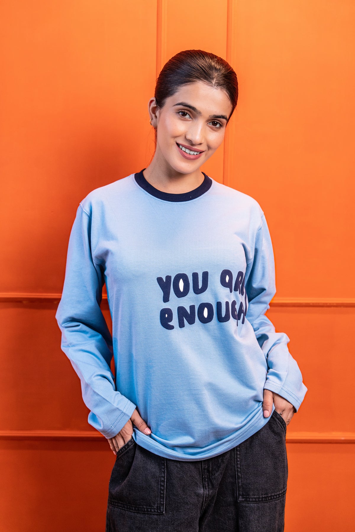 Stop wearing flimsy tops that make you feel exposed. The Serenica T-shirt delivers the crucial benefit of maximum durability and a powerful dose of self-affirmation through its ultra-heavy 260 GSM cotton and inspiring message, "You Are Enough." You get a tee that maintains its structure and feels incredibly premium, offering a substantial, high-quality look that serves as a comfortable, uplifting cornerstone for your wardrobe.